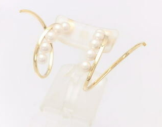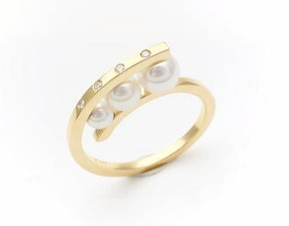 ゆるいカーブのついたゴールドベース上に並べたパールが印象的なデザインです。