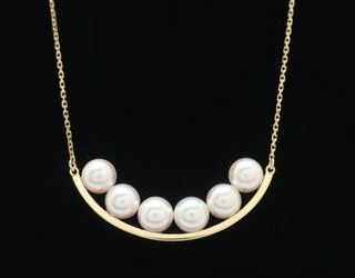 TASAKIでは自社養殖場でハイクオリティな真珠を育成しており、形・大きさ・色・光沢が均一なものを厳選できるため、パールを直線に並べた際にこのような美しいフォルムを作り出せるのです。